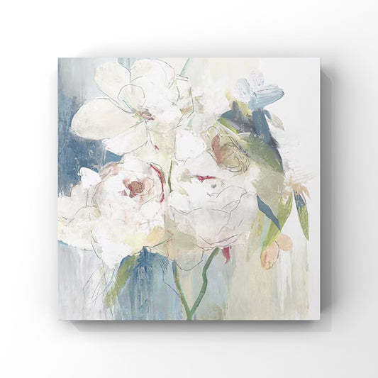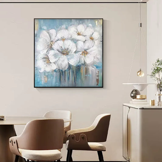 FLOWER PAINTING, WHITE FLOWER BLOOM, HAND-PAINTED CANVAS