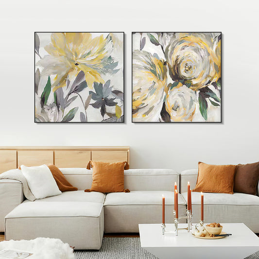 SET OF 3, IMPRESSIONISM FLOWER PAINTING, HAND-PAINTED CANVAS, YELLOW BLOOM