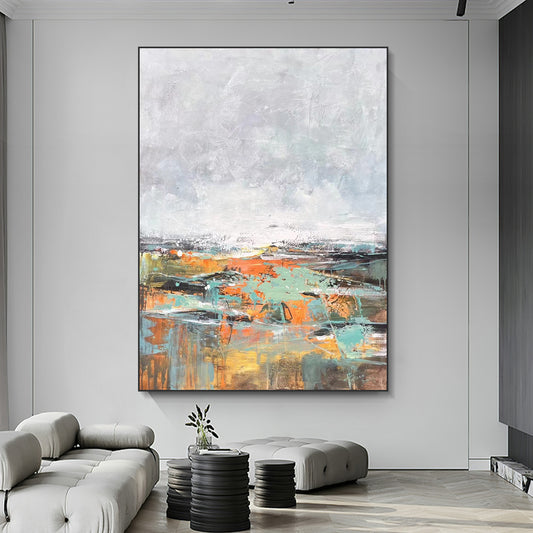 IN THE DISTANCE, LANDSCAPE PAINTING, HAND-PAINTED CANVAS
