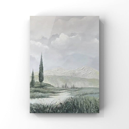 LANDSCAPE PAINTING, GRASSLAND, HAND-PAINTED CANVAS