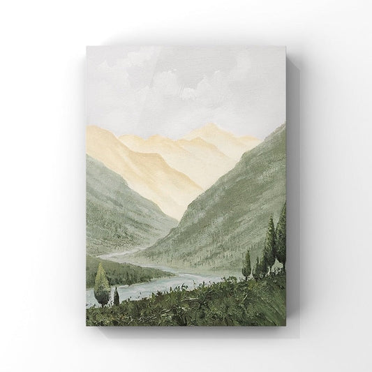 LANDSCAPE PAINTING, MOUNTAIN VIEW, HAND-PAINTED CANVAS