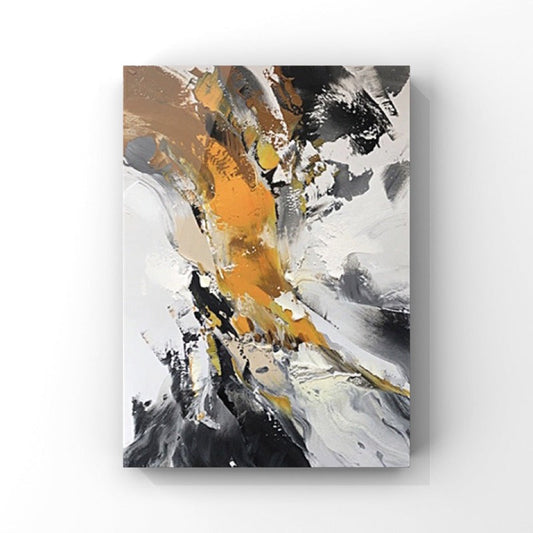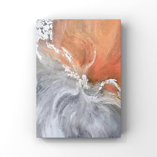 ORANGE AND GREY ABSTRACT PAINTING, FUSION, HAND-PAINTED CANVAS