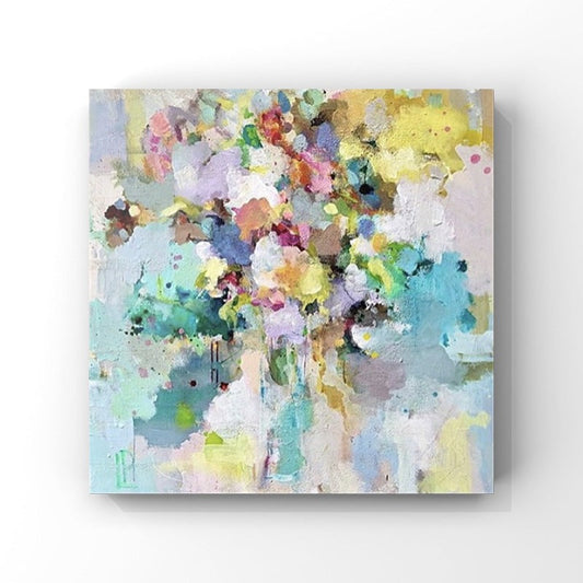 ABSTRACT PAINTING, COLORFUL FLOWERS, HAND-PAINTED CANVAS