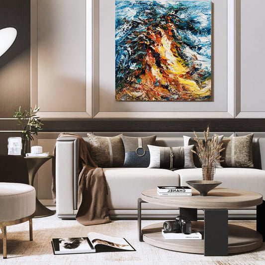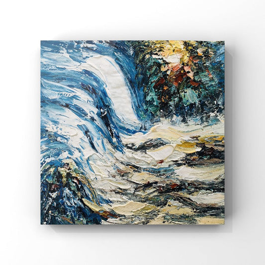 IMPASTO-ABSTRACT PAINTING, THE WATERFALL, HAND-PAINTED CANVAS