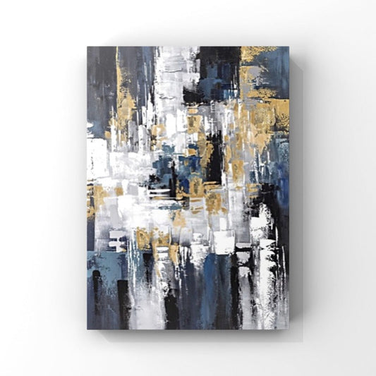 BLUE AND GOLD MOSAIC, ABSTRACT PAINTING, HAND-PAINTED CANVAS