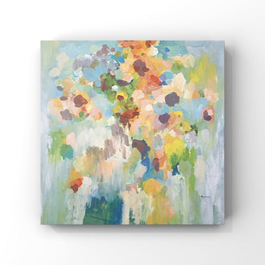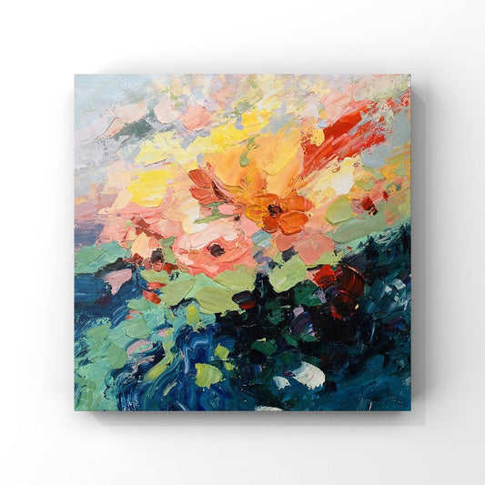 COLOURFUL FLOWER PAINTING, HAND-PAINTED CANVAS
