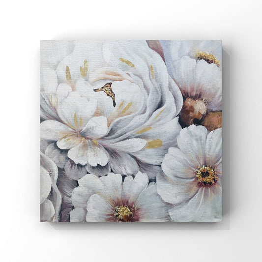 PURE WHITE FLOWER PAINTING, HAND-PAINTED CANVAS