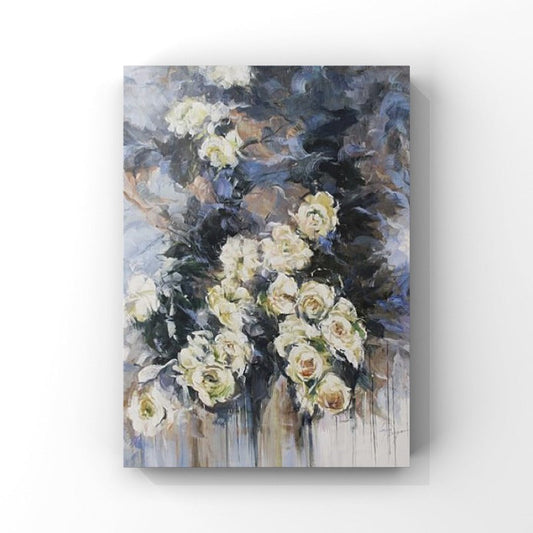 PURE WHITE FLOWER WALL, FLOWER PAINTING, HAND-PAINTED CANVAS