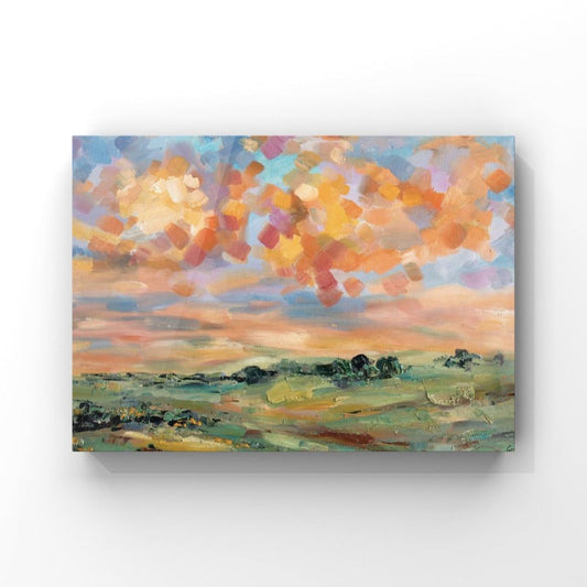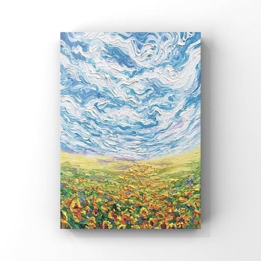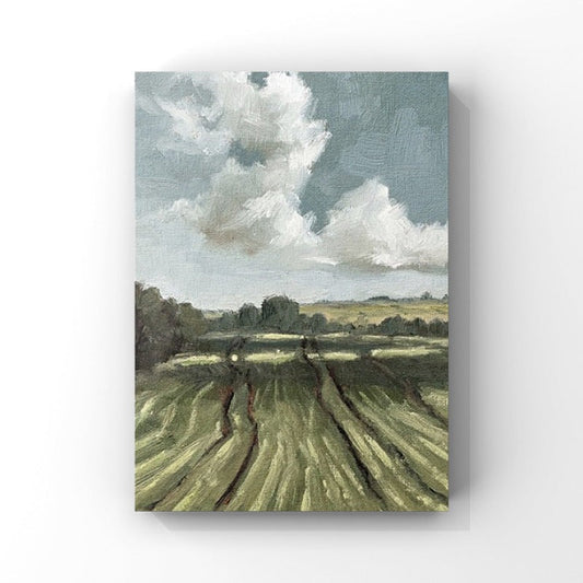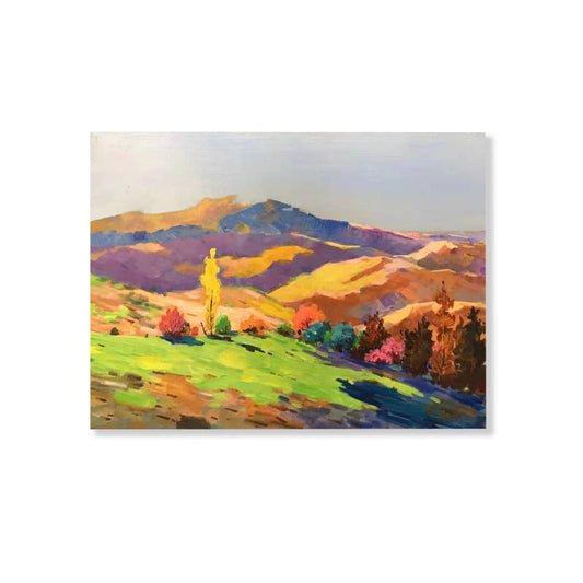 LANDSCAPE PAINTING, GRASSLAND, HAND-PAINTED CANVAS