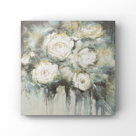 FLOWER PAINTING, WHITE FLOWER, HAND-PAINTED CANVAS