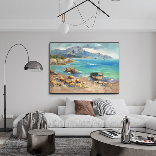 THE COASTLINE, LANDSCAPE PAINTING, HAND-PAINTED CANVAS