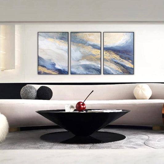 SET OF 3 NAVY AND GOLD MARBLE PAINTING, HAND-PAINTED CANVAS