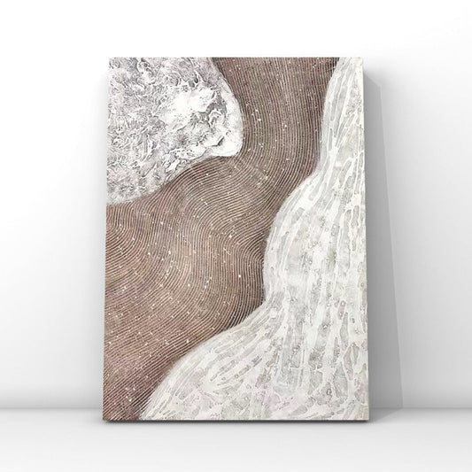 MINIMALIST PAINTING, BROWN AND WHITE, HAND-PAINTED CANVAS