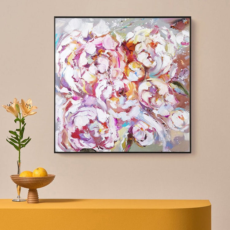 Flower paintings, such as this exquisite pink flower rendition, serve as more than just wall decor—they serve as windows to the natural world, bringing the beauty of nature indoors. Flower artwork Ideal for various spaces like living rooms, bedrooms, or offices, these artworks infuse warmth and sophistication into any setting. Whether you're drawn to the soft petals of a rose or the bold hues of a tulip, flower paintings offer a timeless aesthetic that complements a range of decor styles.