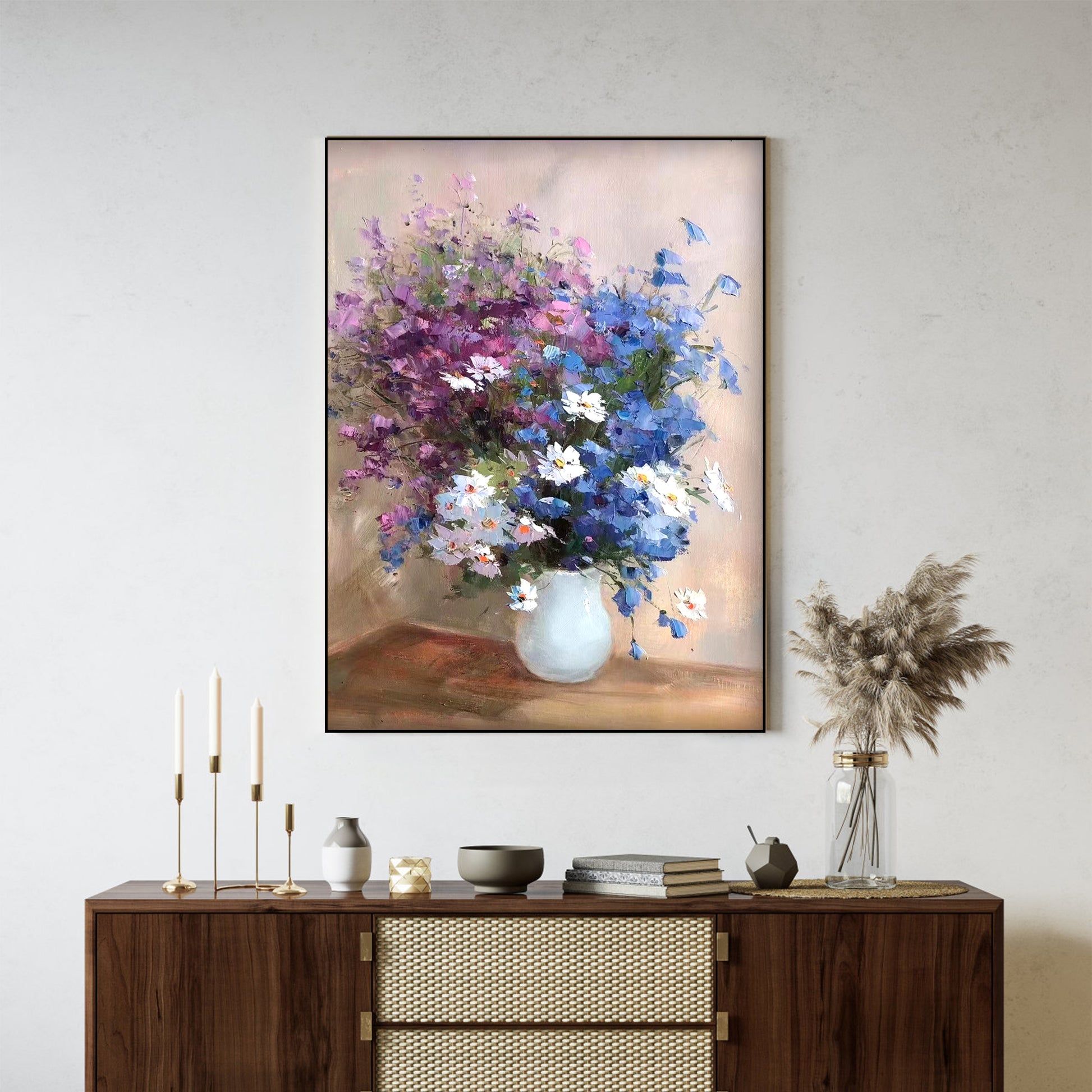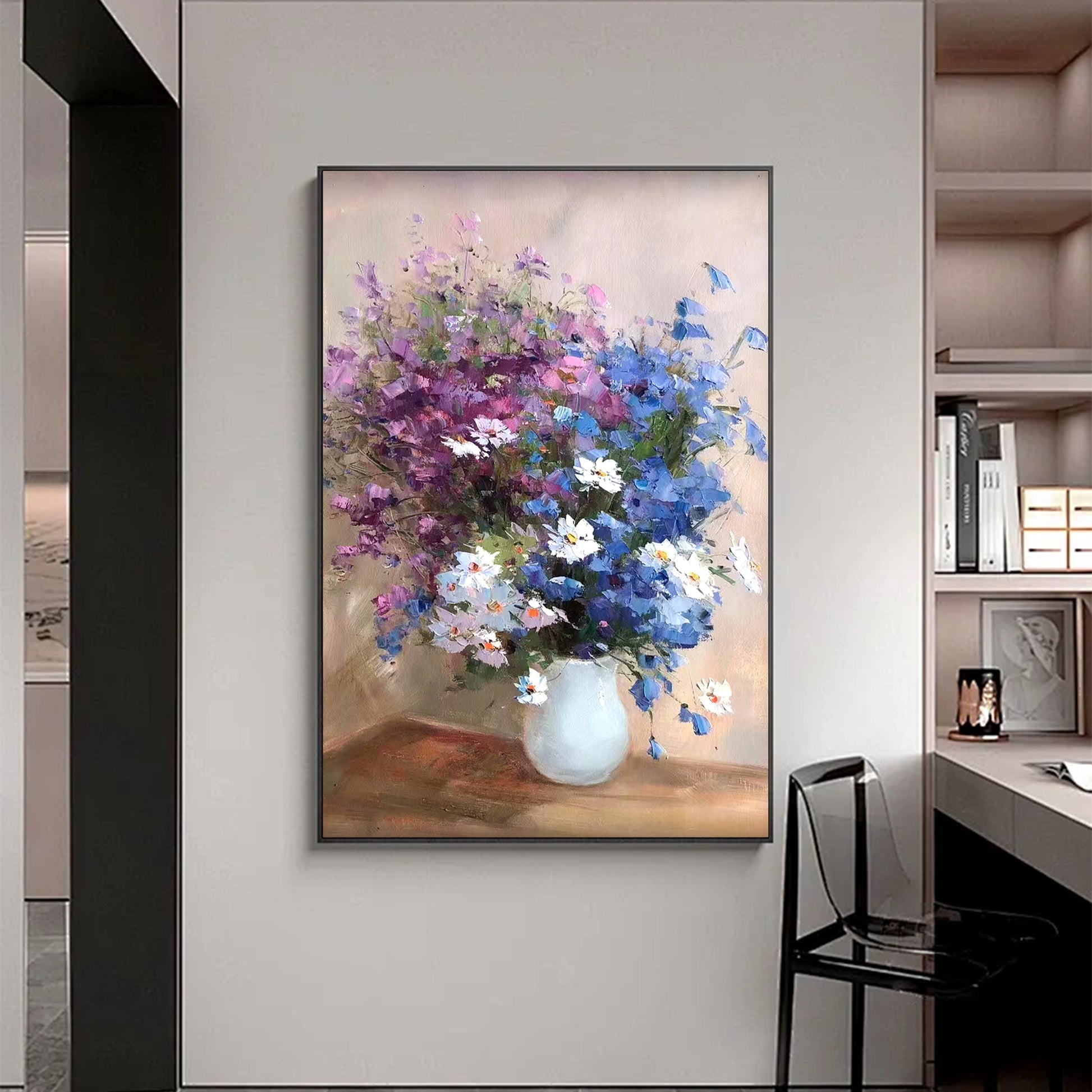 Presenting the elegant floral painting, CLASS BLOOM, meticulously crafted on premium canvas. This artwork is a celebration of nature's beauty, expertly painted with a delicate blend of colours and precision brushstrokes, radiating sophistication and a distinct aesthetic that enriches any room.