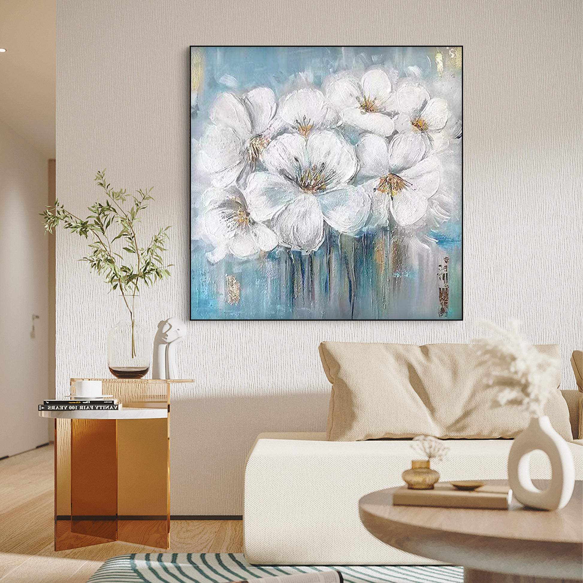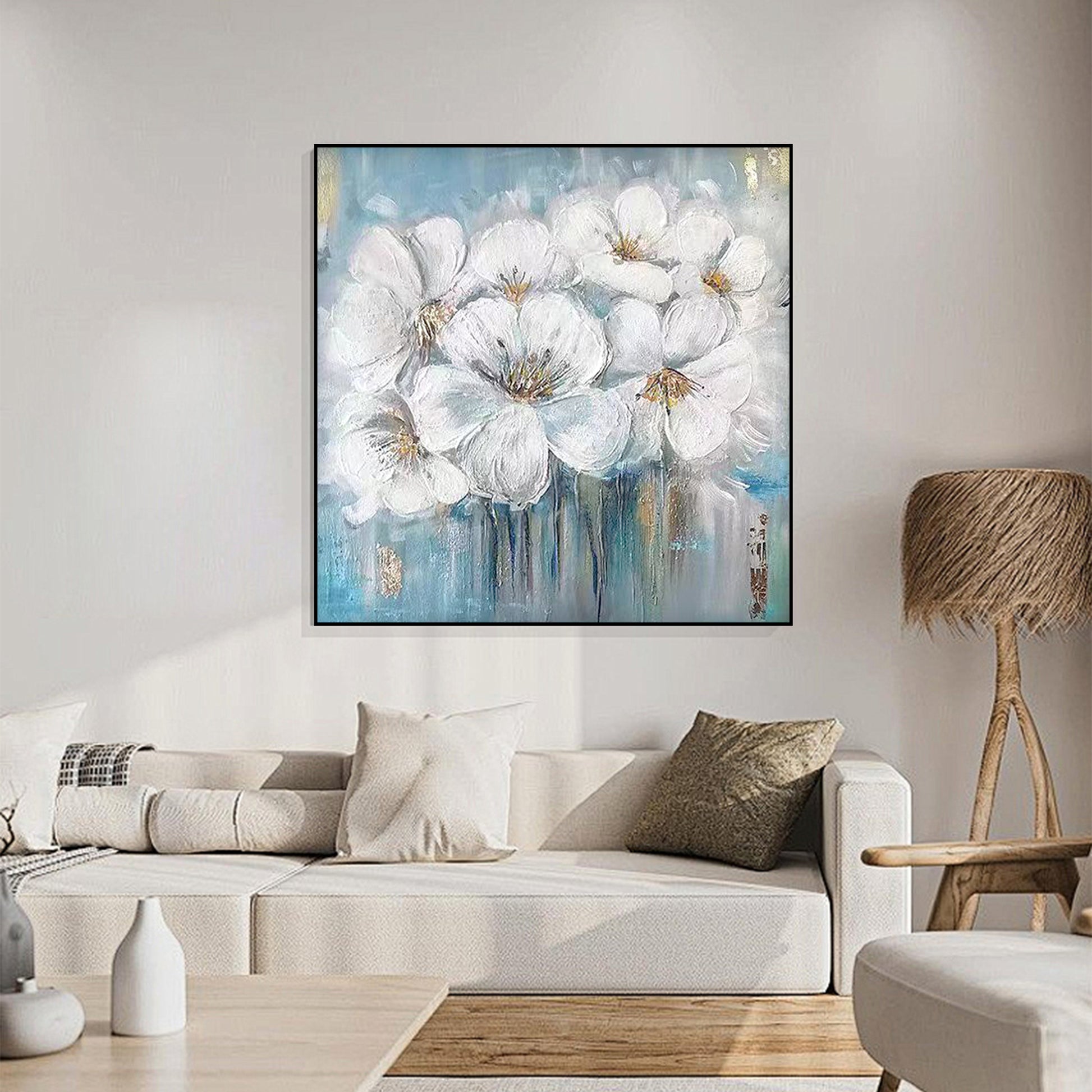 Elevate your home decor with our White Flower Hand-Painted Canvas. With its vibrant colors and lifelike details, this artwork captures the timeless beauty of nature's blooms, creating a focal point that enhances any room. Crafted with premium materials, this piece ensures durability and longevity, making it a cherished addition to your home for years to come.