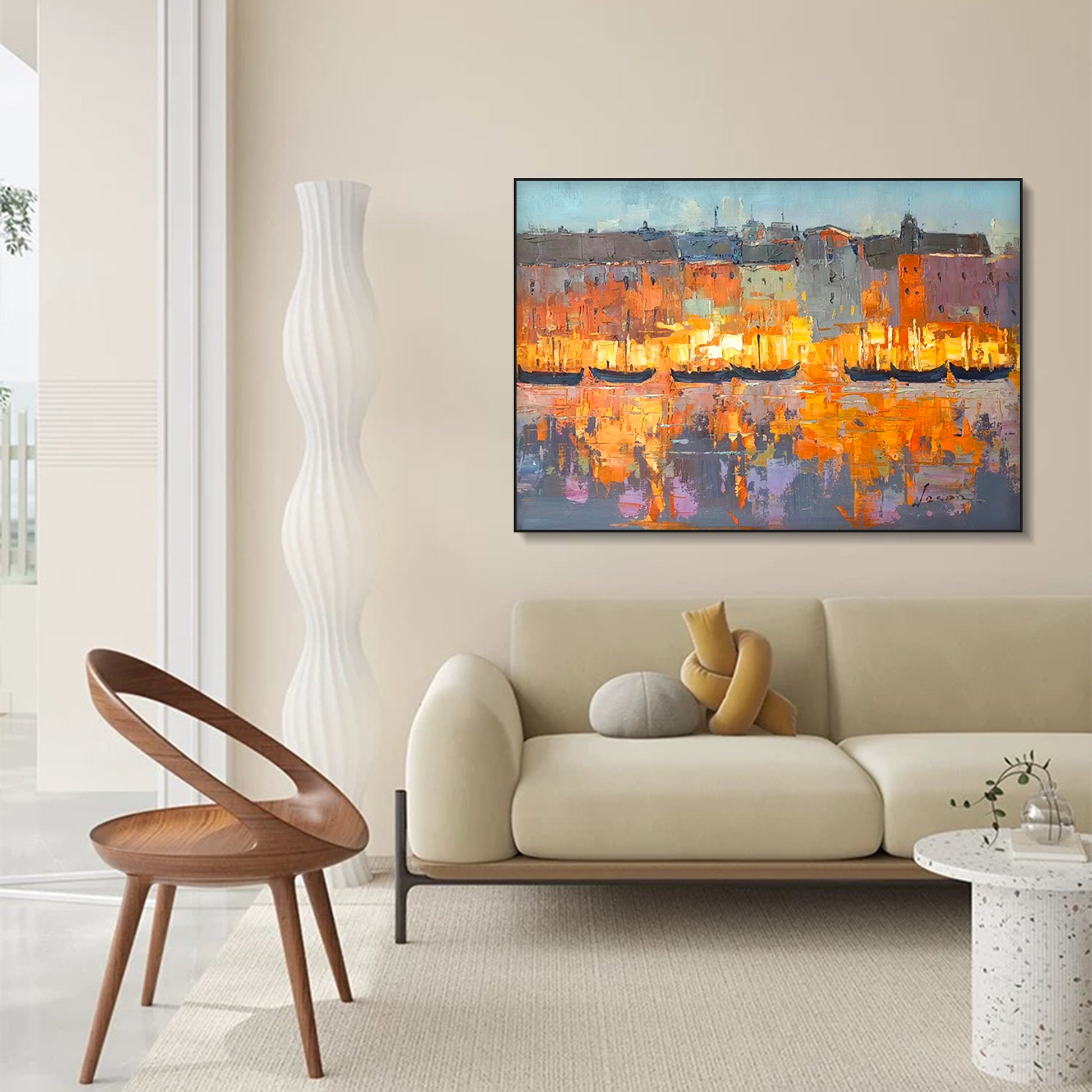Elevate your interior decor with the captivating elegance of landscape art embodied in "LANDSCAPE PAINTING, COASTAL BRIGHT LIGHTS, HAND ARTWORK." More than just a painting, it's a masterpiece that encapsulates the allure of coastal living. Adorn your walls with this exquisite artwork and let its beauty transform your home into a sanctuary of coastal inspiration, where the bright lights of the coast illuminate your space with warmth and tranquility.