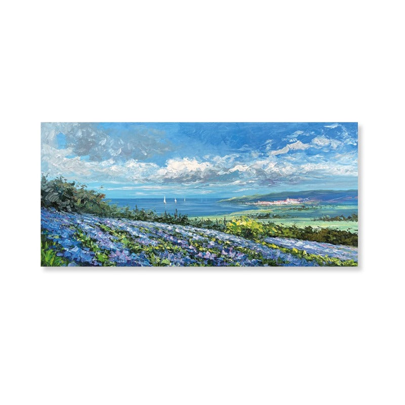 LANDSCAPE PAINTING, LAVENDER LAND, HAND-PAINTED CANVAS