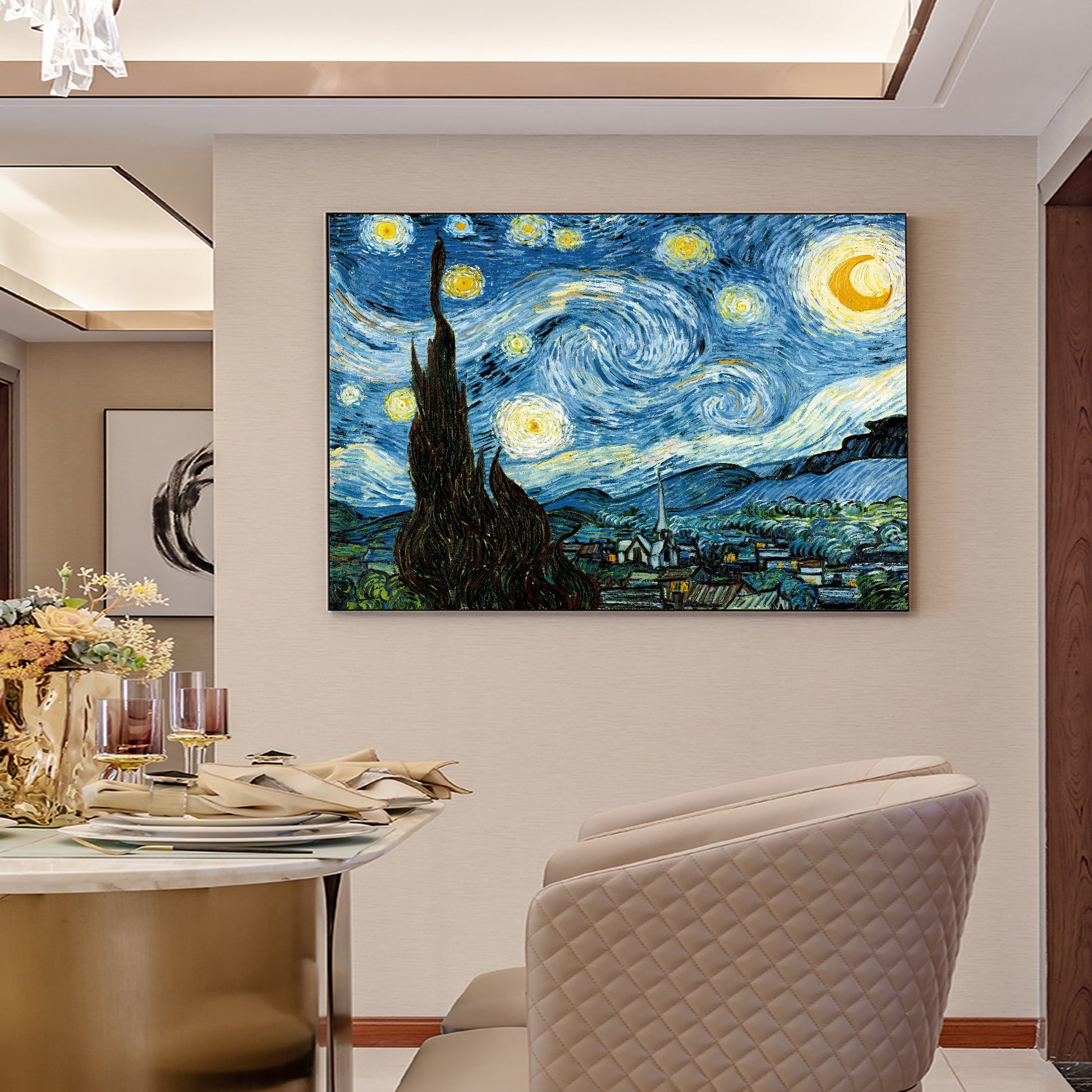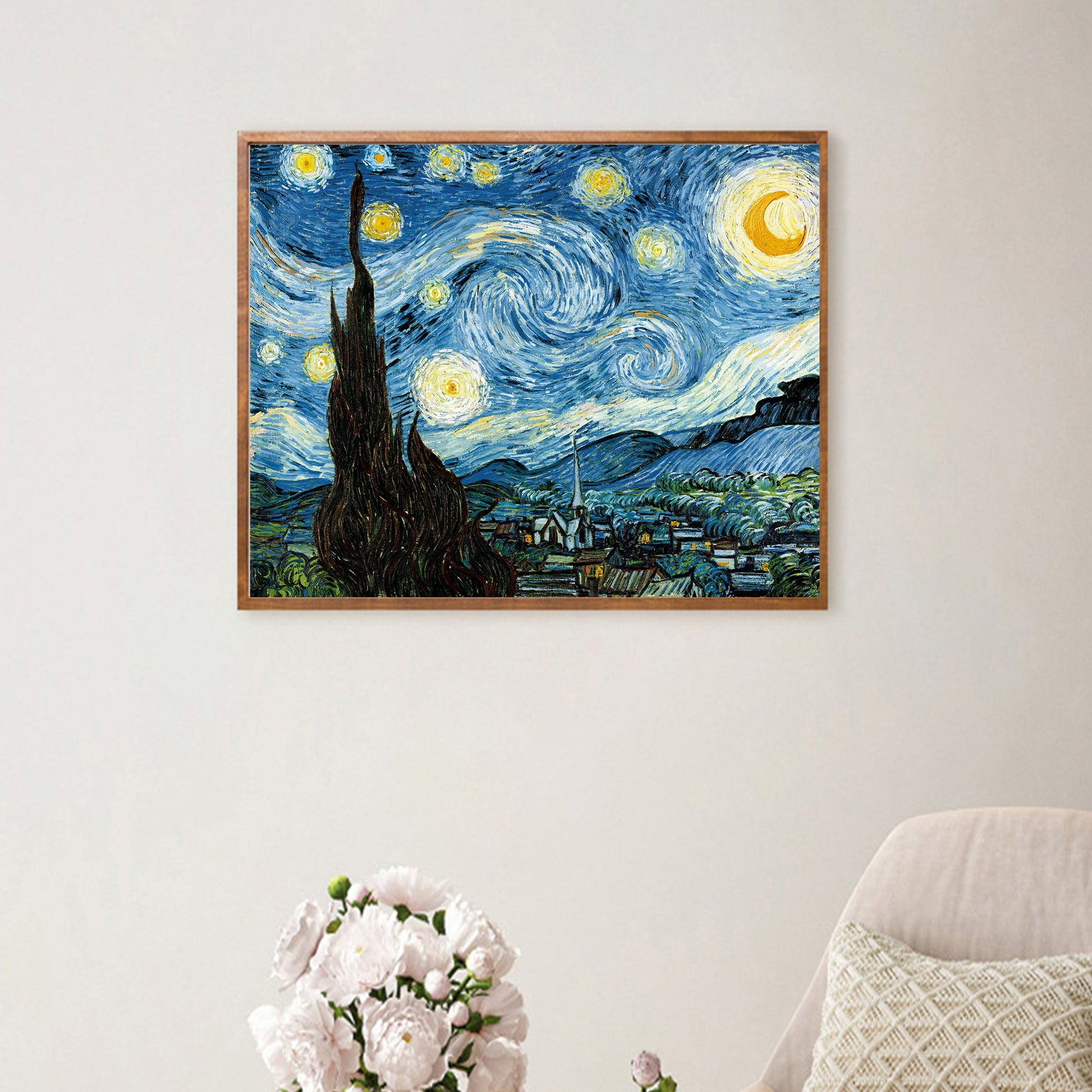 During his stay, he produced ‘The Starry Night’, which features a view from the window of the asylum just before sunrise, with the addition of an imaginary village. The thick, sweeping strokes of paint make the sky come alive alongside the swirling clouds and an illuminated crescent moon. In contrast, the town below appears calm. Completing the scene is a huge cypress plant, uniting the sky and village.