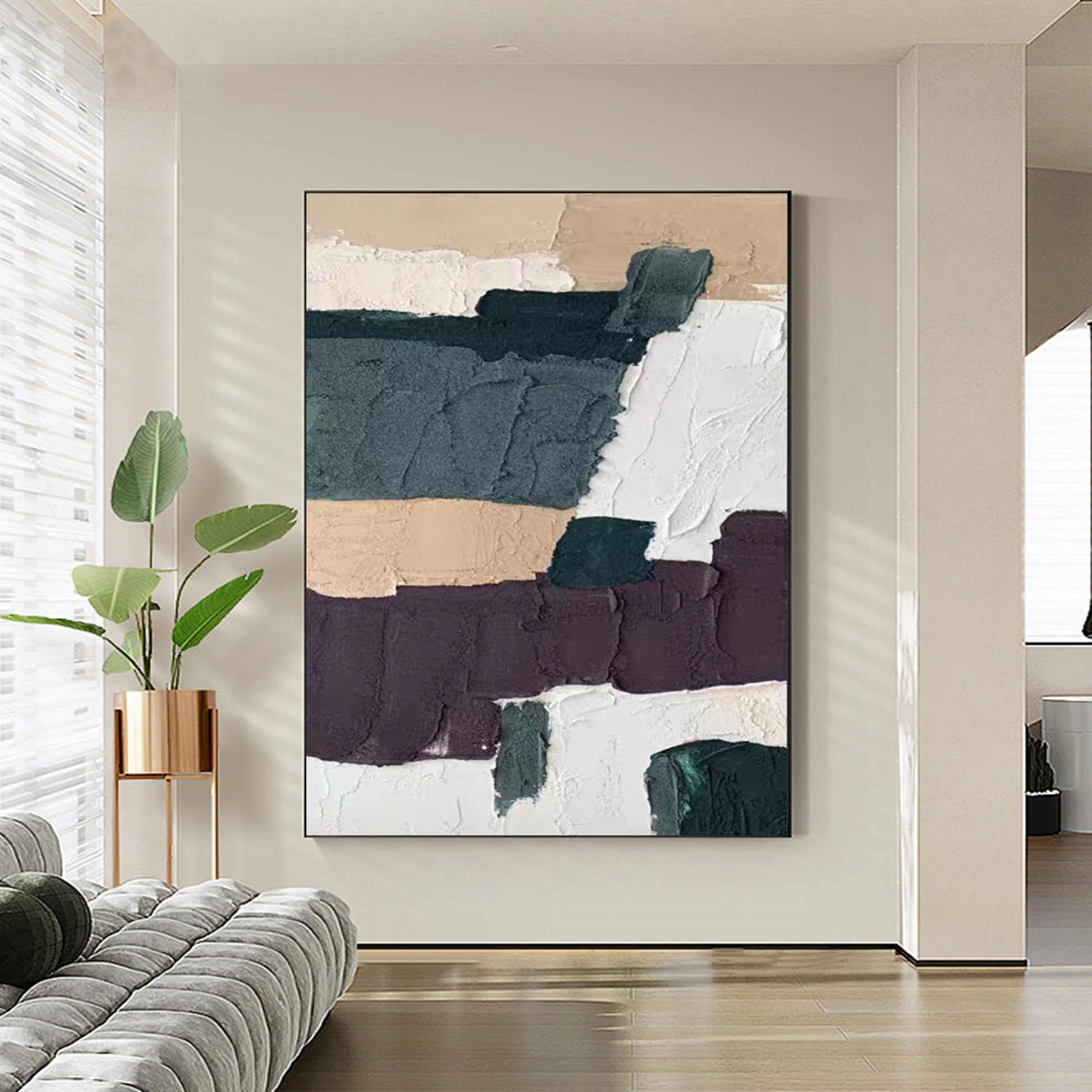 MINIMALIST PAINTING, THICK TEXTURE NAVY AND BROWN, HAND-PAINTED CANVAS