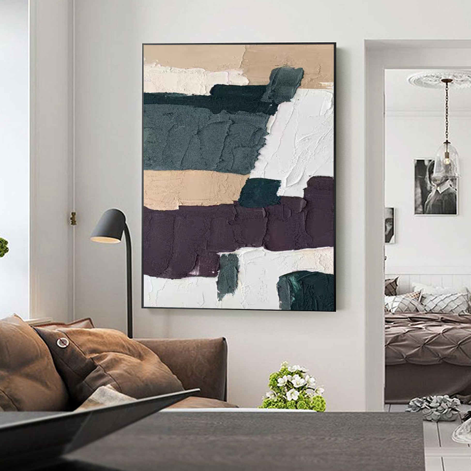 This hand-painted canvas offers a classic black and white minimalist painting design with a contemporary touch. Its subtly textured canvas adds a sophisticated and elevated feeling, making it a perfect room accent for any décor. Crafted from quality materials, this canvas provides a stunning, long-lasting display piece.