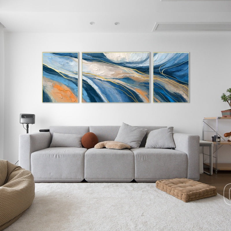 This set of 3 hand-painted canvas abstract paintings feature intricate details, vibrant colors, and durable construction. Perfect for any wall, these paintings are sure to make a statement in any space.