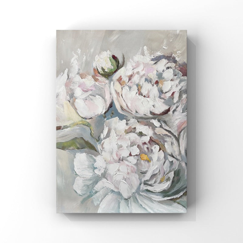 WHITE FLOWER PAINTING, HAND-PAINTED CANVAS